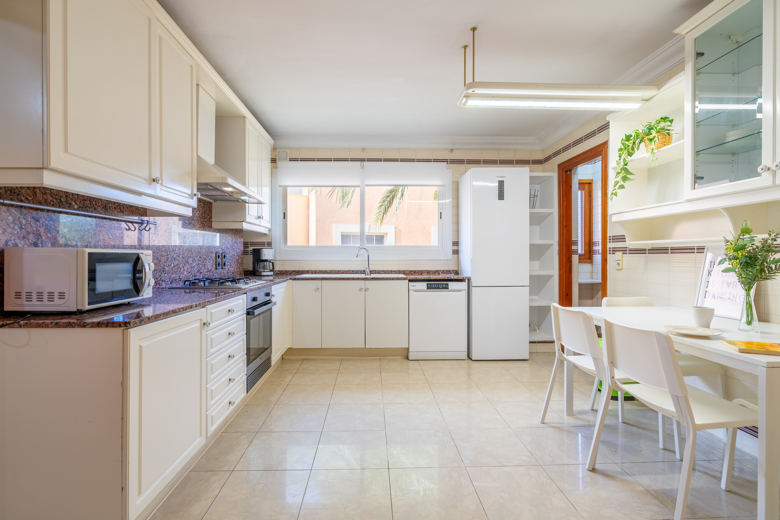 Im Inneren finden wir ein großes und helles Wohnzimmer mit Kamin und bequemen Sofas, umgeben von einer delikaten Dekoration, wo Sie fernsehen oder einfach nur Zeit in Gesellschaft eines guten Buches verbringen können. Neben dem Esszimmer steht Ihnen eine große, voll ausgestattete Küche zur Verfügung.