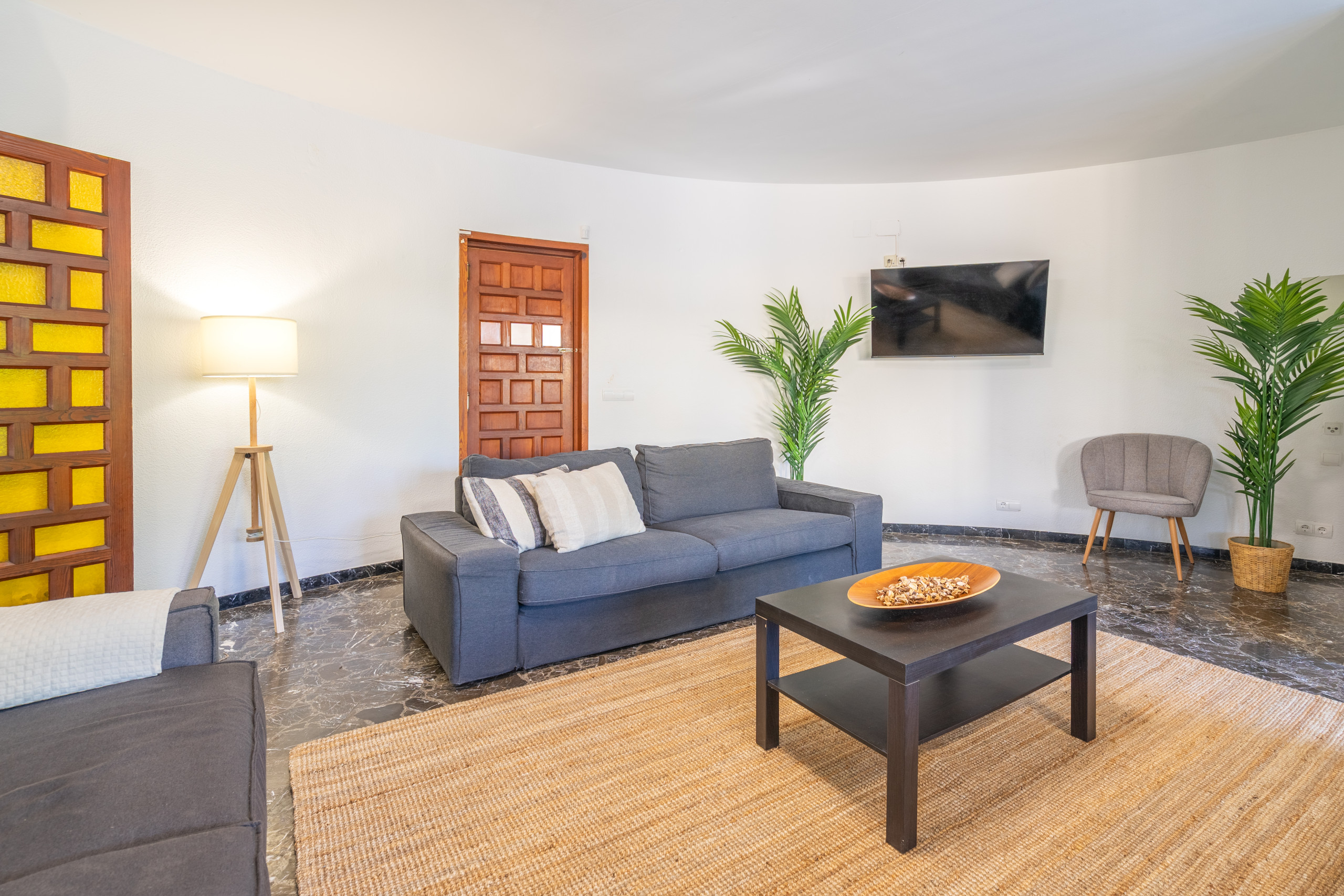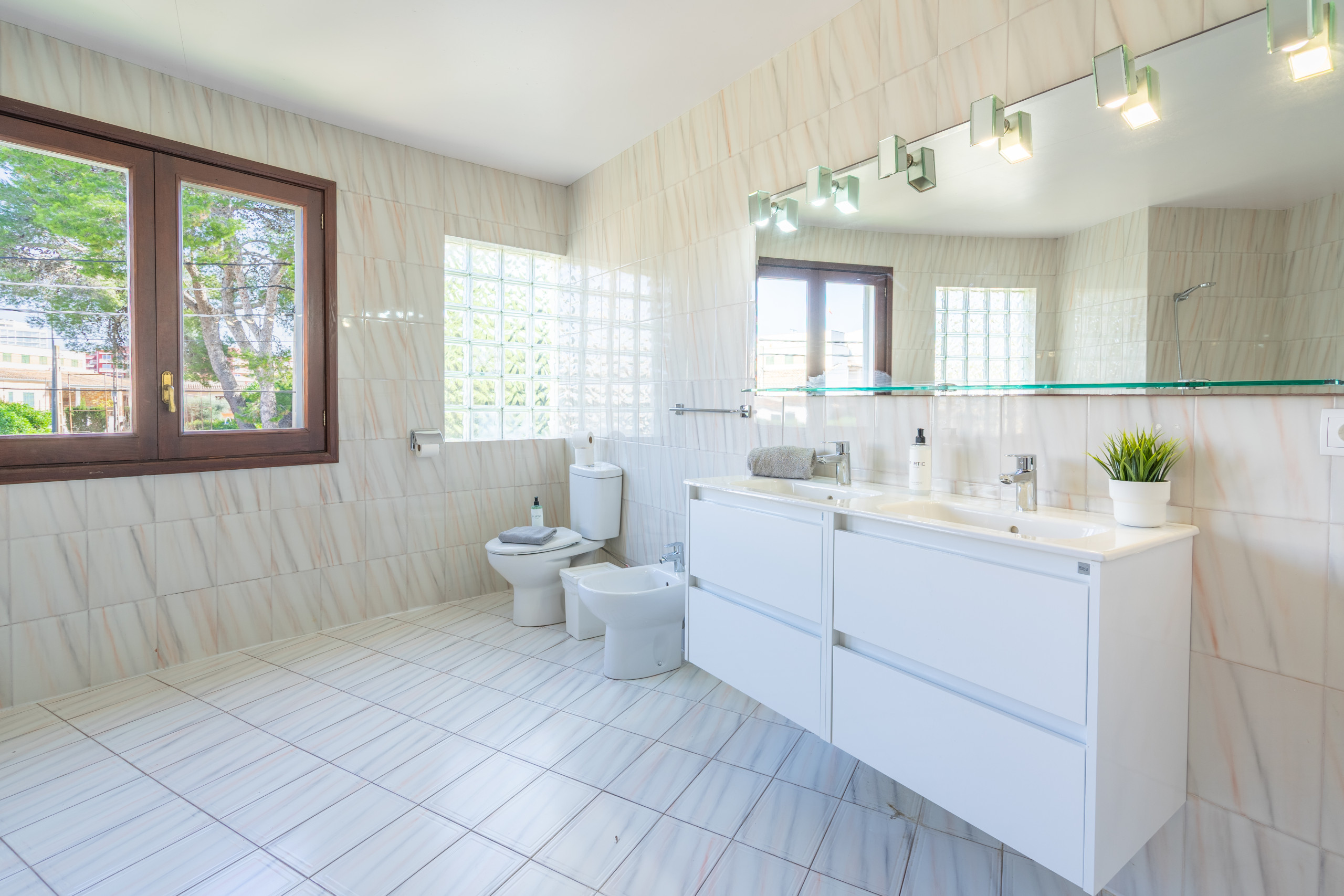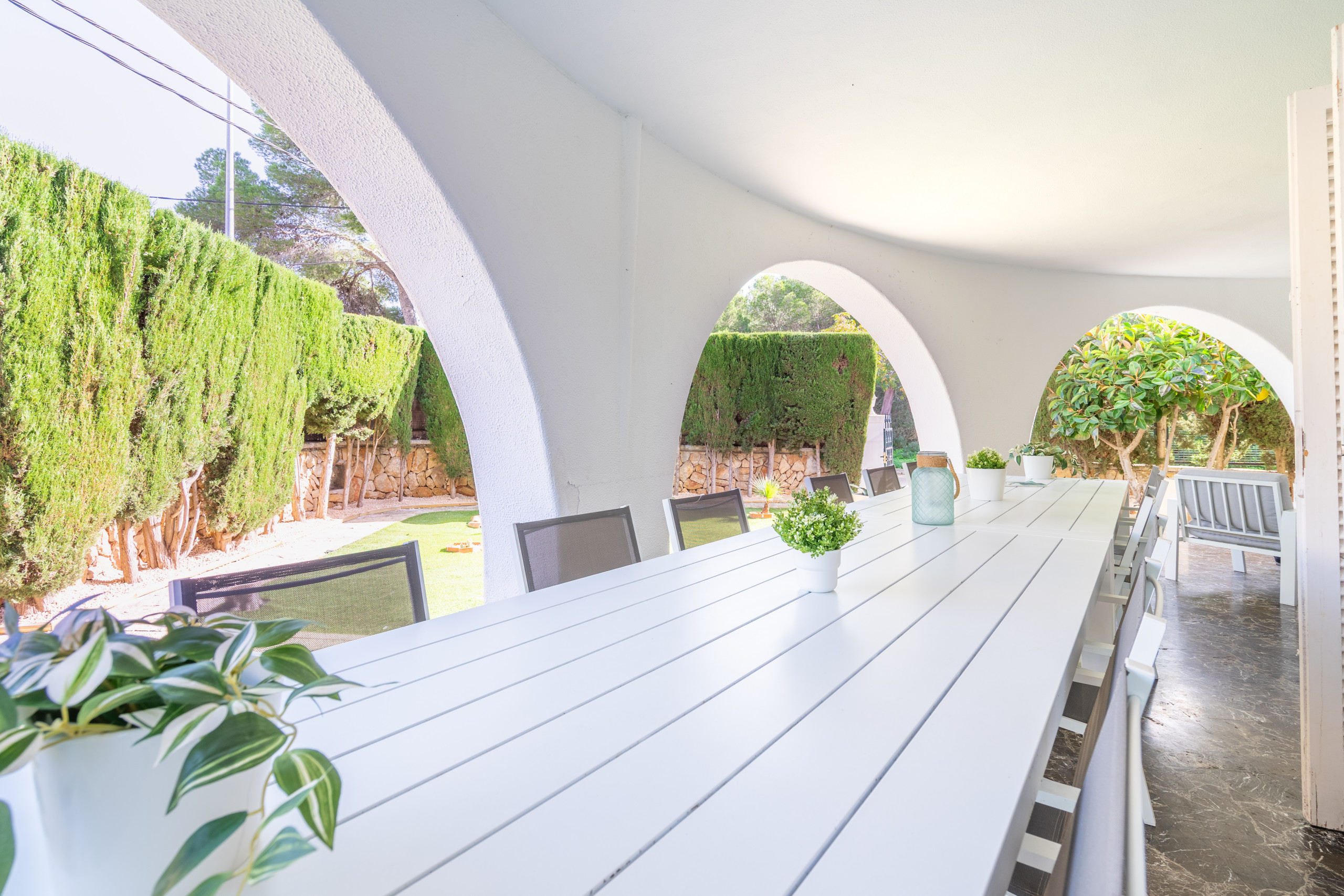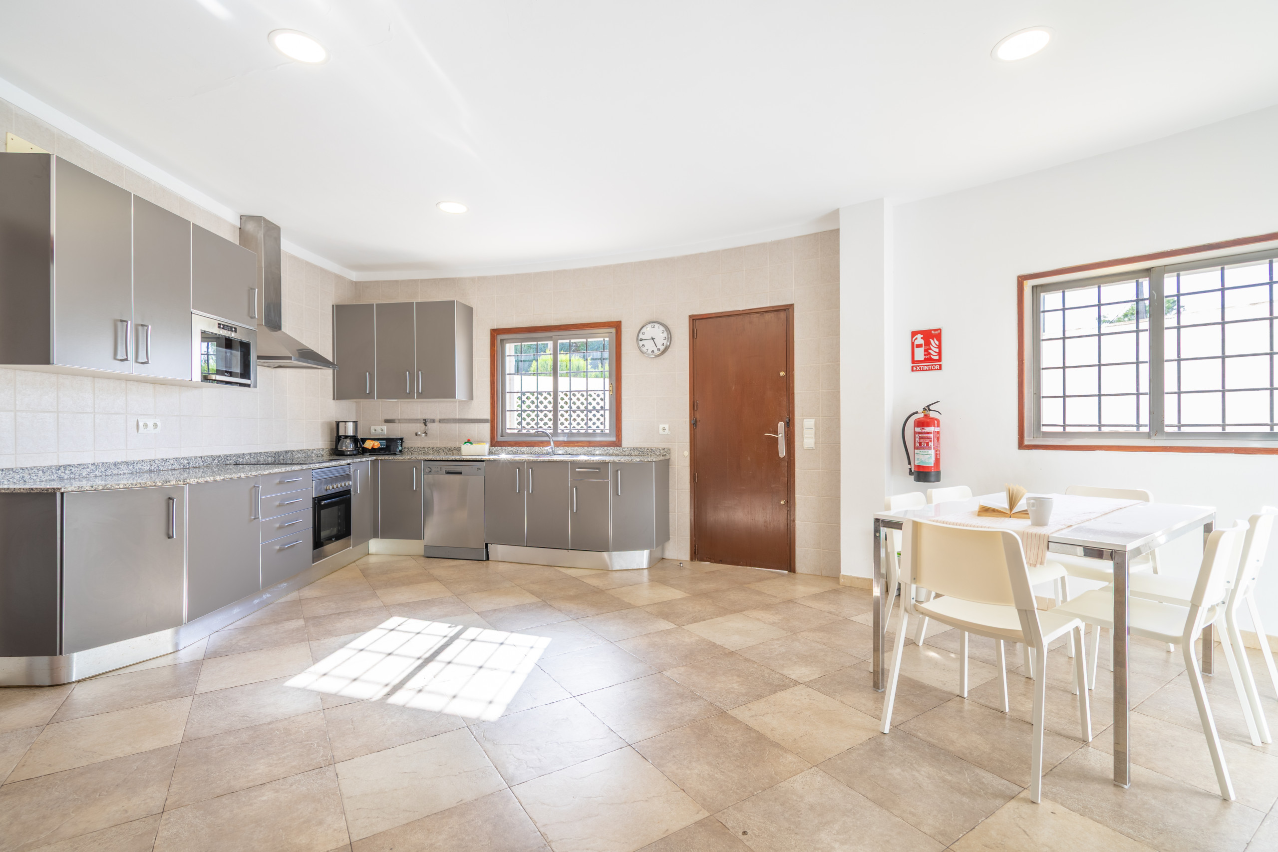 We rented this property as a group of 12 people right after our graduation and we can say that we really enjoyed staying there. Everything was like it was described, the size was perfect for this number of people, even though we did not really use the living room as we enjoyed eating and relaxing outside a lot -having a pool to ourself was great- . On the first day we were provided with drinking water. I would also like to point out the nice service of Portic Villas. It was easy communicating and they replied fastly to our messages. The villa is located on the very end of the promenade of s'arenal on a small hill. For all the party people out there-it took us about 20 minutes to the Megapark by foot- After all we would definitely book this villa again.