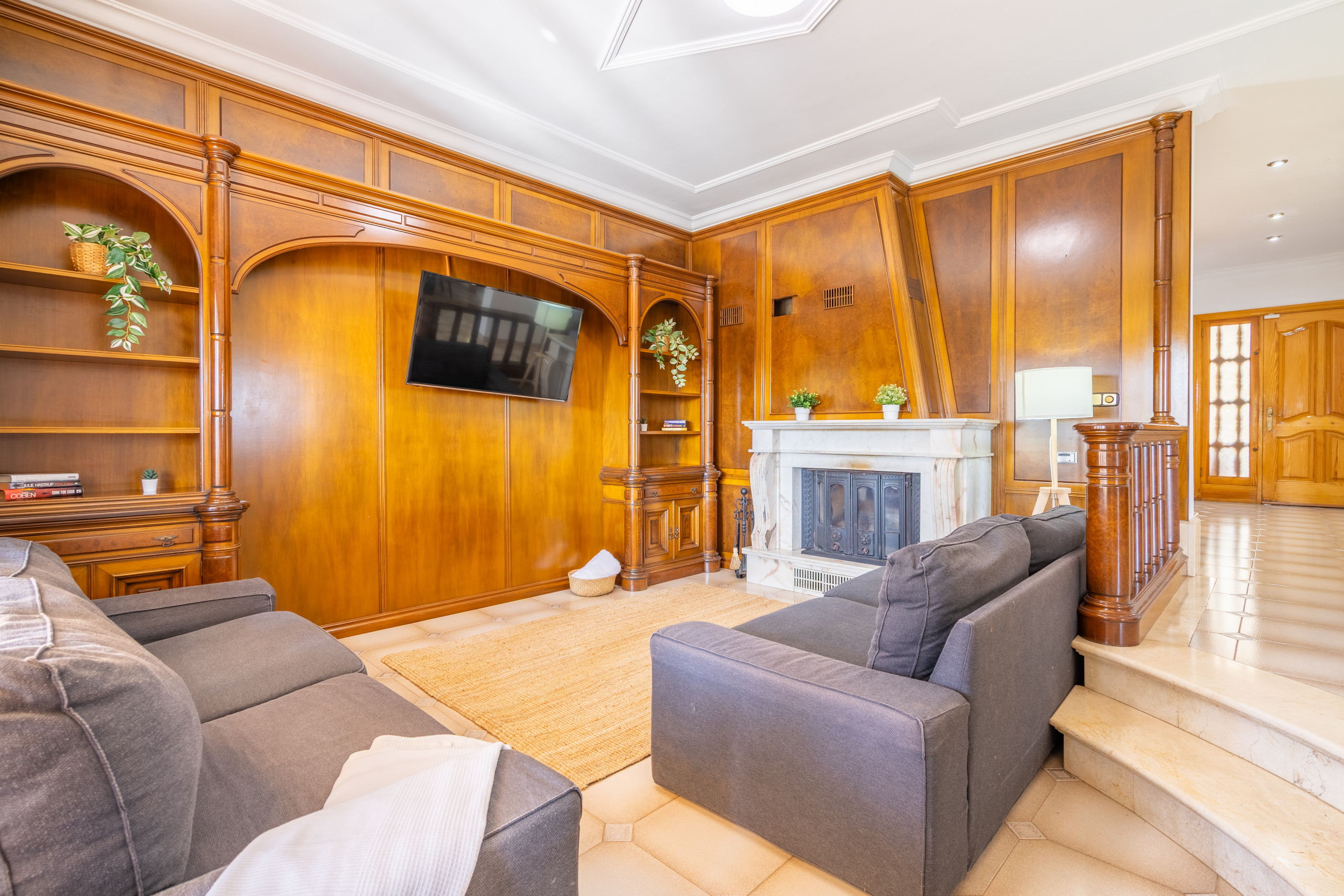 Im Inneren finden wir ein großes und helles Wohnzimmer mit Kamin und bequemen Sofas, umgeben von einer delikaten Dekoration, wo Sie fernsehen oder einfach nur Zeit in Gesellschaft eines guten Buches verbringen können. Neben dem Esszimmer steht Ihnen eine große, voll ausgestattete Küche zur Verfügung.